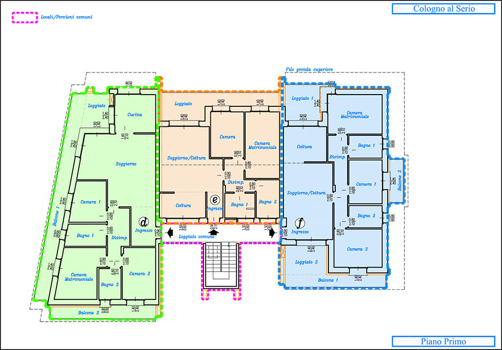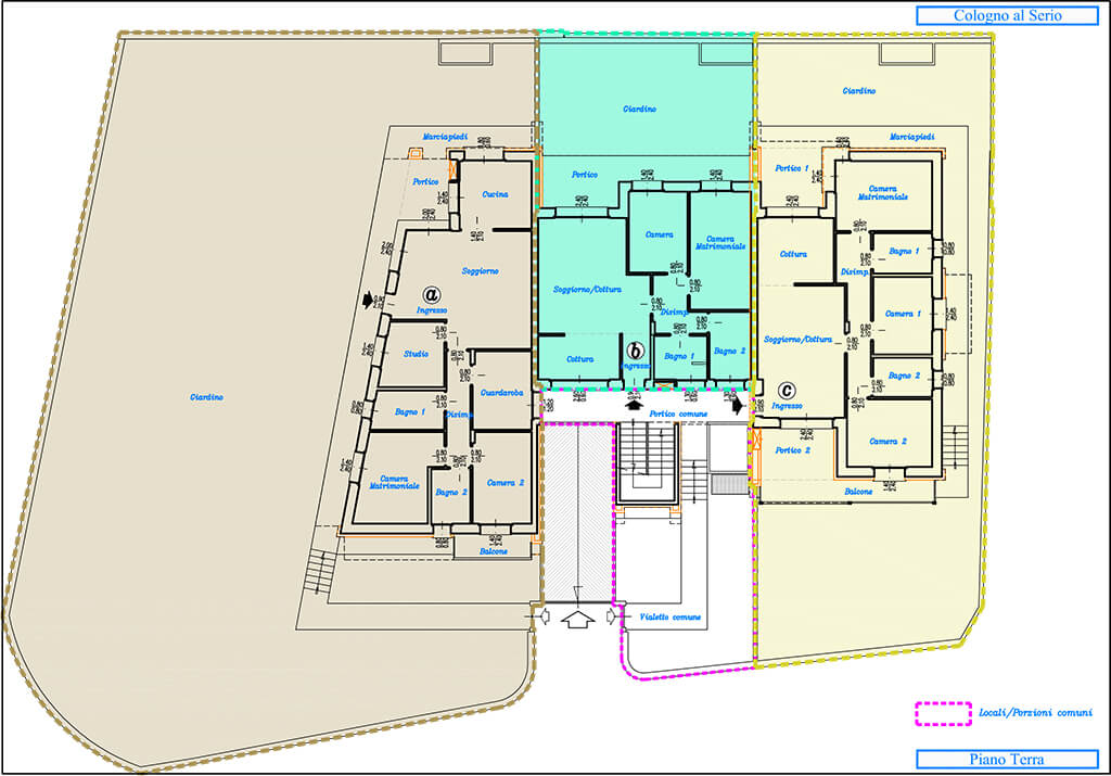I giardini di pertinenza dell’abitazione riguardano gli alloggi A-B-C , mentre i restanti giardini saranno di proprietà condominiale.